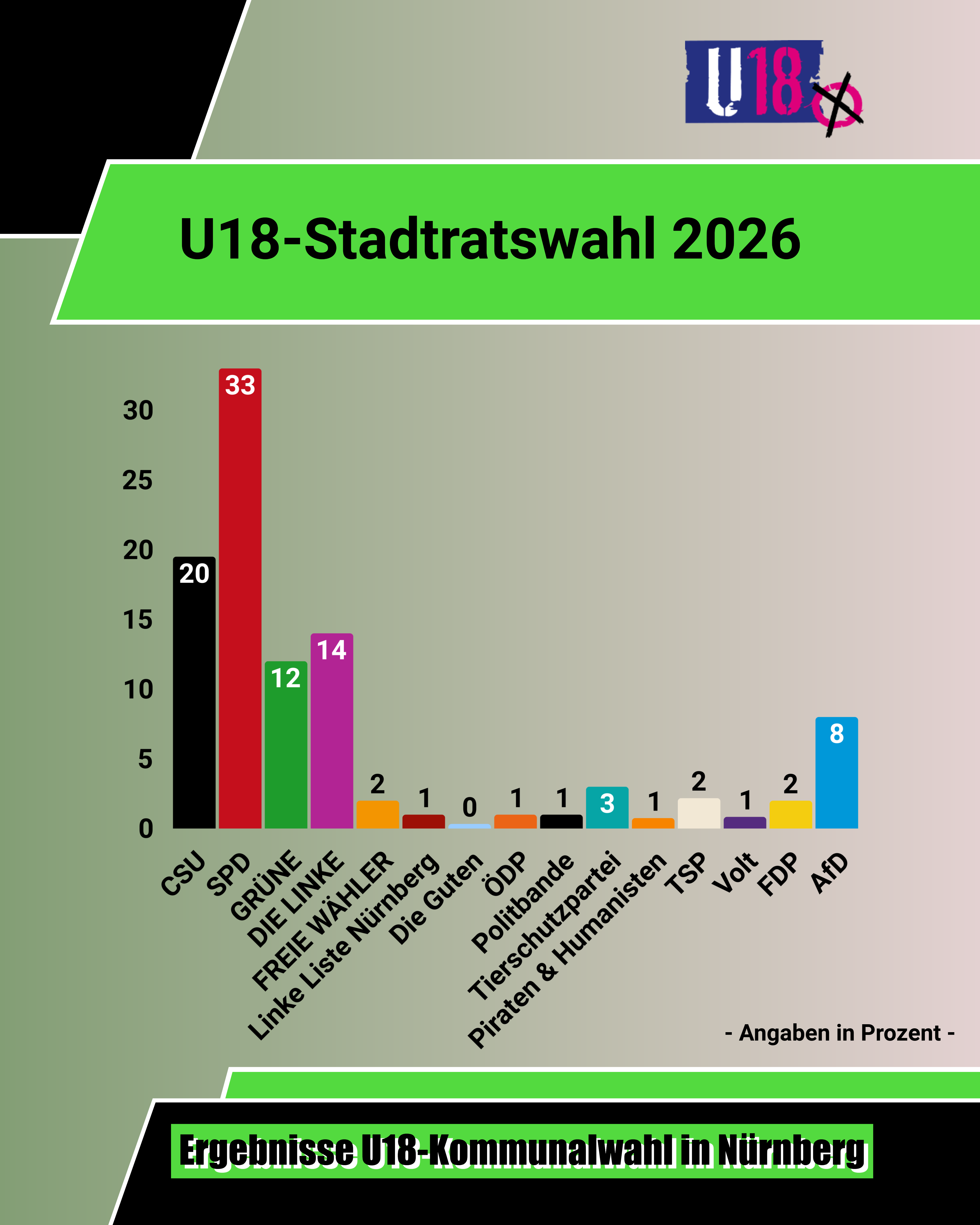Die Ergebnisse der U18-Stadtratswahl sind: