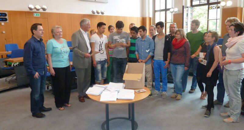Das Foto oben zeigt: Übergabe check! Am 4.7. haben afghanische Flüchtlinge und UnterstützerInnen den Offenen Brief an Herrn Förther, 2. Bürgermeister, übergeben. Nun heißt es abwarten, was die Empfänger des Briefes – der Bayerische Innenminister, der Oberbürgermeister Dr. Maly und der Leiter der Ausländerbehörde – zu den Forderungen der afghanischen Flüchtlinge zu sagen haben. Hilfreich: die Integrationskommission der Stadt Nürnberg hat auf Antrag der Grünen Stadtratsfraktion entschieden, dass sie das Bayerische Innenministerium auffordern wird, die Abschiebungen nach Afghanistan auszusetzen.