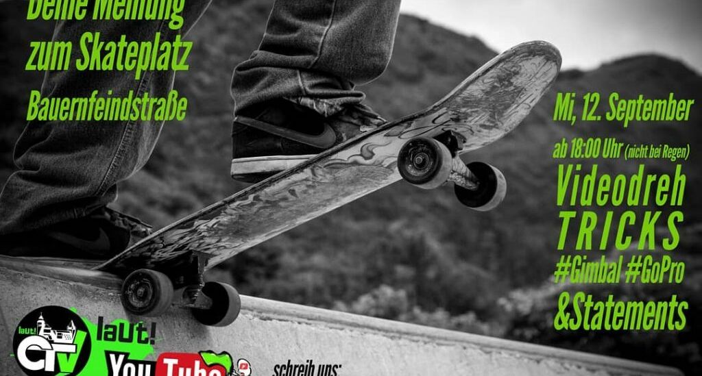 Am 12.09.2018 sind wir gemeinsam mit CiTyVee ab 18.00 Uhr am Skateplatz an der Bauernfeindstraße.
