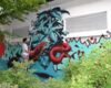 Gemeinsam mit professionellen Künstlern haben die Teilnehmerinnen und Teilnehmer des Workshops das N-Ergie Trafohaus am Melanchthonplatz (Singerstraße / Ecke Okenstraße) mit urbaner Kunst umgestaltet.