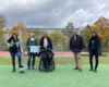 Der neu sanierte Bolzplatz in Langwasser wird der Öffentlichkeit übergeben. Von links nach rechts: Derya Bingöl-Karik (Jugendamt Projekt "laut!" - Partizipation von Jugendlichen), Kristina Brock (Vorsitzende Bürgerverein Langwasser), Frank Thyroff (wbg Nürnberg GmbH Immobilienunternehmen), Gerhard Berr (stellvertretender Vorsitzender Bürgerverein Langwasser), Christian Vogel (Bürgermeister und erster Sör-Werkleiter), Antonia Möller (Kreisjugendring Nürnberg-Stadt, Projekt "laut!").